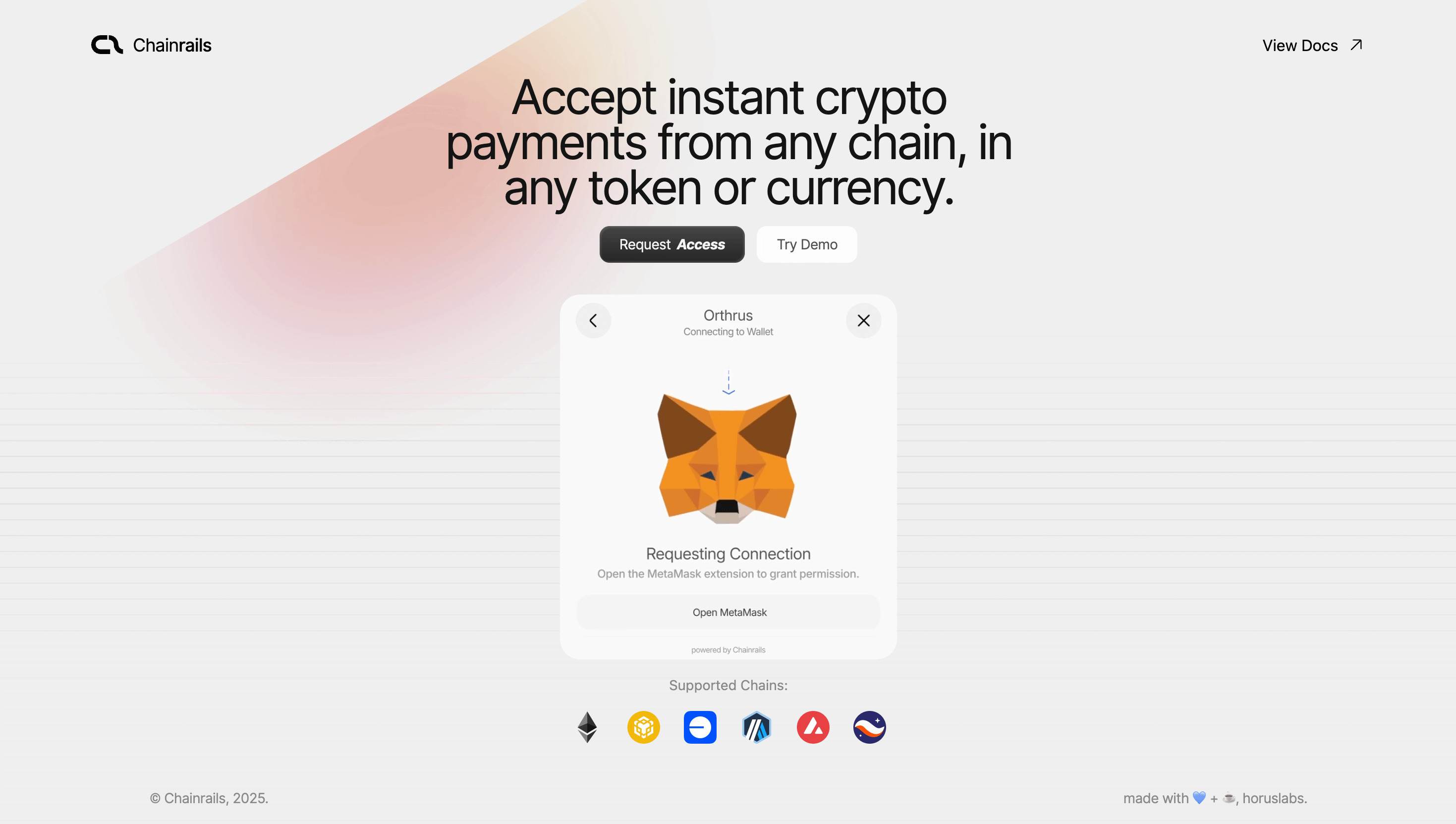 A developer-first payments SDK that lets apps accept payments from any chain, in any token or currency ā instantly